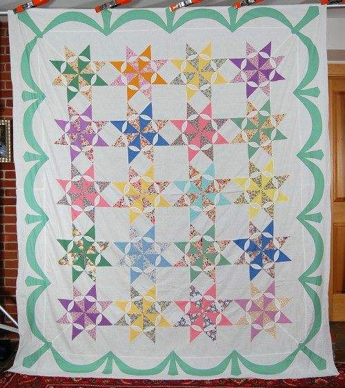 Very cool star block, How does the construction of it work? Are the curved pieces appliqued on top of the diamonds or pieced separately?